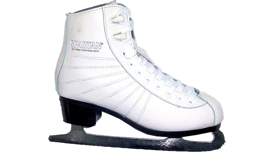 Ženske drsalke, usnjen zgornji del, na celotni površini vezalke. Bela barva.
