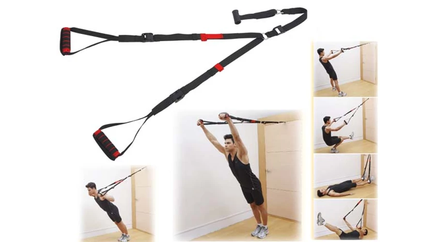 Vsestransko orodje za krepitev, ki deluje po načelu prenašanja uteži, ki ga mnogi že poznate iz koncepta TRX. Ta sistem za vadbo z vrvmi je sestavljen tudi iz trakov, ki jih lahko preprosto pritrdite na vrata. Konca trakov imata mehak oprijem, ki zagotavlja stabilen oprijem za roke in noge. Trenažer Multi Gym Trainer, ki ga je enostavno namestiti, vam omogoča učinkovito krepitev celotnega telesa doma brez potrebe po ločeni opremi. Med vadbo deluje na vse mišice telesa, pri tem pa kuri kalorije in krepi celoten mišično-skeletni sistem. Ta oblika vadbe se razlikuje od tradicionalne vadbe, saj je zelo lahka in kompaktna ter jo lahko uporabljate kjer koli: doma ali celo na potovanju. Opremo lahko uporabljate na nedrseči površini. Dolžina vrvi je približno 2,2 m. Izdelku sta priložena barvni ilustrirani vodnik in pojasnjevalni/razlagalni opis v angleščini.