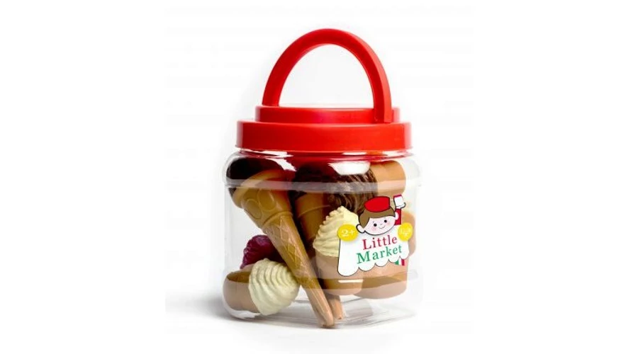 Vsebina: 10 plastičnih igrala s sladoledom v praktičnem zaklepnem nosilcu. Višina držala 15 cm. Ni priporočljivo za otroke, mlajše od 3 let!