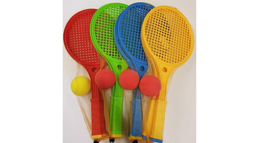 Vsebina: 2 plastična loparja velikosti 49×22×1,5 cm in 1 pena teniška žogica.
